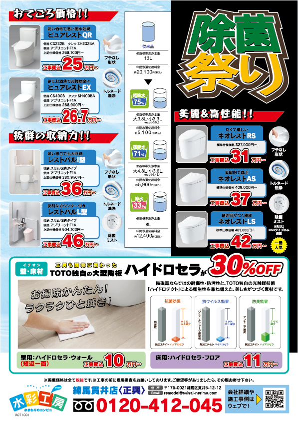 トイレ、ユニットバス、キッチン、エアコン、内装材など、全て値上がりしています。ご注意下さい。